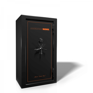 The overall thickness of the door on the American Rebel PT-30 Patriot 30 Gun Safe is 4" thick. It is made with double plate steel and has a 7/16" reinforced door edge. The door uses 12-gauge inner steel, 6 times stronger than most imported safes. The body is made with 12-gauge steel, three times stronger than the 14-gauge steel found on most imported gun safes. This gun safe has 1-1/4" diameter door bolts to prevent pry attacks to the door. The boltwork is a four-way active boltwork, which means it is on all four sides of the door. There is a diamond-embedded armor plate as well. The outside of the PT-30 is protected by a Sargent and Greenleaf Spartan Digital Electronic Lock.