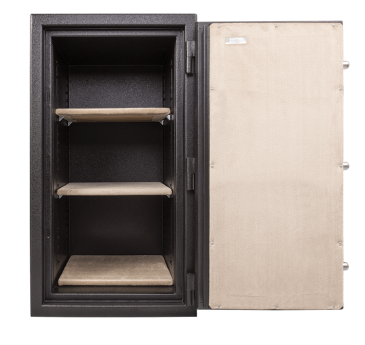 The AMSEC BF3416 Dual Rated Safe along with the other sizes in the series is one of the standards in the industry. The door has an overall thickness of 3-1/2" with a solid 1/2" thick steel plate included. Impressive Huh? We thought so. Along with the 1/2" steel plate we have included three (3) very large 1" diameter bolts and a full-length dead bar that fits deep into the interior to protect the contents from forcible entry. The body with 1/8" steel shell and overall thickness of a bit more than 2.5 inches helps provide the Intertek 60 minute fire protection. This is your assurance that the contents of your safe will be protected from fire.