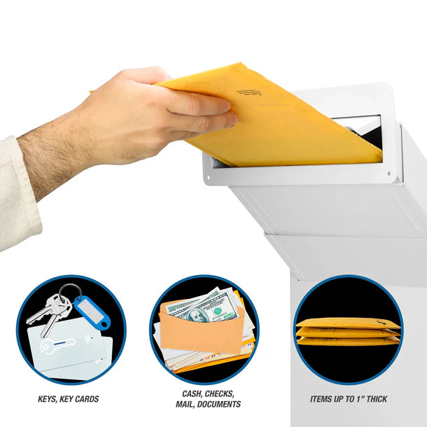 With its classic, straightforward design, the Barska CB13954 Drop Box is practical and user-friendly. The large rear door, accessed with the included keys, allows quick retrieval of deposited items, which is ideal for after-hours drop-offs, secure mail deposits, and general document collection. Built with a reliable key lock system and pre-drilled holes for wall mounting, it offers a dependable and accessible solution for secure submissions in business, school, or office settings.