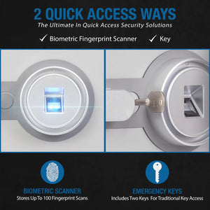 To protect your items from theft, the Barska AX13738 Biometric Fireproof Safe White has two solid steel long locking bar bolts that prevent someone from trying to pry open the door. The safe can be bolted down using the pre-drilled mounting holes. This is highly recommended. The outside uses a biometric lock that can store up to 100 users. This means you can program multiple fingerprints and even store those of a trusted relative or friend. The lock operates on 4 AA batteries, which are not included.