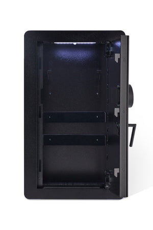 Built for security in mind, the BlumSafe Professional Junior incorporates a durable, UL-listed Securam keypad with a reliable fingerprint sensor, ensuring that only authorized users can access the safe's contents. Its advanced locking system includes patent-pending locking jaws, anti-drill lock plates, and a 12-gauge steel body to enhance pry resistance. The safe's design meets California Department of Justice standrard for firearm storage. The outside is painted in a sleek, scratch-resistant black exterior, built with thicker door and body walls than most safes in its class, providing both durablity and a professional look.