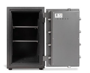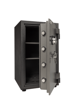 Included at no extra cost on the AMSEC BFS2815E1 Burglary and Fire Safe is an ESL10XL Digital Electronic Lock. This allows you to program one user and change the 6-digit combination at any time. An ESL20XL Multi-User Digital Lock is an upgrade that will give you up to 9 user codes, dual control mode, and time delay. The outside is painted with an attractive two-toned black and gray finish. Inside are two adjustable steel shelves to help organize your contents. AMSEC includes a lifetime fire warranty with each purchase of the AMSEC BFS2815E1 Burglary and Fire Safe.