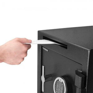 Barska's AX13314 features a drop depository slot on the top of the safe. This safe is designed for short-term cash storage and is perfect for restaurants or any cash business that needs to make regular bank deposits.