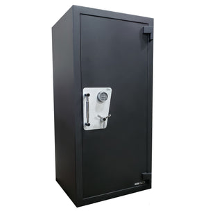 American Security had the CEV6528 tested for both burglar and fire protection. It has UL-certified TL-15 burglary protection which is a high security rating. The defense barrier in the door and body houses a proprietary amalgamation of nuggets and steel fibers to withstand concentrated attacks with the most sophisticated equipment used by burglars today. It also has 120 minutes of fire protection. This dual-threat safe is the ultimate in protection. You can see based on the weight at 3,153 pounds that this is a real safe.