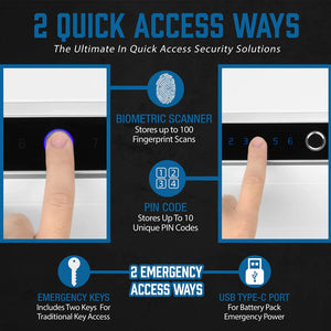 Inside, the Barska AX13938 is just as impressive, featuring a vegan leather quilted interior that protects your items from scratches while adding a touch of luxury. The spacious 0.92 cubic feet interior includes a removable shelf for customizable storage, ideal for jewelry, documents, or small electronics. A hidden USB Type-C port allows emergency power with a battery pack (not included) in case of battery failure, complemented by a low battery warning to keep your safe functioning reliably. Its sleek gloss white finish enhances its aesthetic appeal, making it a stylish addition to any home or office.