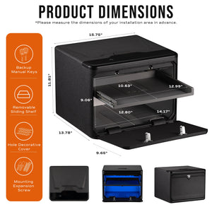Built with rugged steel construction and finished with a corrosion-resistant black coating, the RP2009 is as durable as it is discreet. Its automatic drop-down door and silent mode make it ideal for fast, stealthy access in high-stress situations. Weighing 33.73 pounds and equipped with mounting hardware and pre-drilled holes, this safe is designed for secure installation in your home or office. The RPNB RP2009 combines security, convenience, and thoughtful engineering, providing you with trusted protection without compromise.