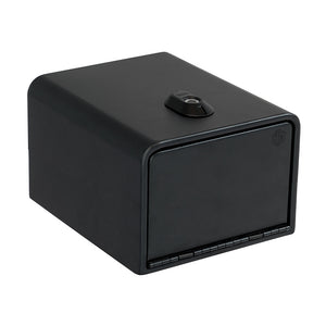 The outside is protected by a biometric lock that will hold up to 100 fingerprints To gain entry, just swipe your fingerprint across the scanner. There is a silent entry mode so you can open your safe discretely. Two override keys are provided in case the batteries die, or something happens to the lock.