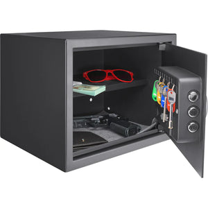 The Barska AX13748 WardenLight Mini LED Digital Keypad Safe is your compact solution for safeguarding laptops, electronics, handguns, valuables, and more. Whether tethered using the provided security cable in a dorm room or anchored to a solid surface, its versatility ensures peace of mind.