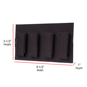 The Tracker PPM4 Pistol Mag Holder is your reliable companion for organized magazine storage. With overall dimensions of 5.50" high by 9.50" wide by 1.00" deep (expands in depth), this holder provides ample space for up to four pistol magazines. The material features a stretchable design and will fit most pistol magazines. It can be placed on the back of your safe door, inside the wall of your safe, or even cars, trucks, etc.