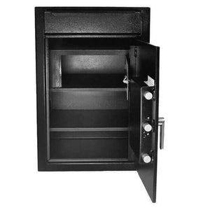 The Stealth DS3020FL12 Depository Safe with Internal Compartment is designed for gas stations, restaurants, hotels, motels, or any retail type business that needs to secure cash, receipts, and other items of value. It weighs a heavy 180 pounds which is much heavier than the competition in this same size. This is due to the solid steel 1/2" door and 12 gauge body. The door has razor-thin door gaps which will add protection against a forced entry attempt such as a pry attack.