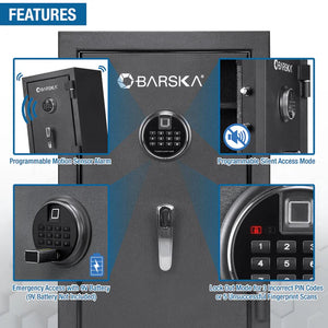 This safe combines convenience with high-level security features. It has four steel locking bolts and two steel deadbolts to prevent pry attacks. There is an external 9V battery backup for uninterrupted access (battery not included) in case of low battery power. Backed by a 1-year limited warranty, the Barska AX13744 offers a dependable solution for safeguarding your home or office valuables.