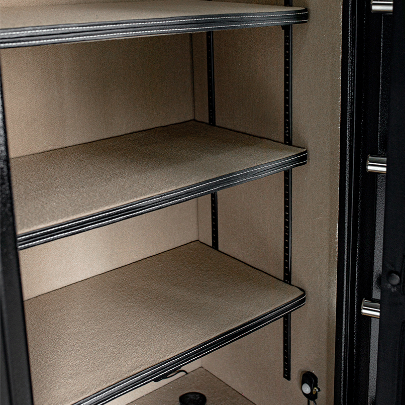 Winchester has made the WH12 Home 12 Home Safe to fit into any decor. It is painted in either a durable black or slate powder coat finish. There is a chrome single lever handle. A standard power docking system provides (2) 110V outlets and (2) USB pass-throughs. Inside is an adjustable shelving system for interior customization to fit your storage needs.