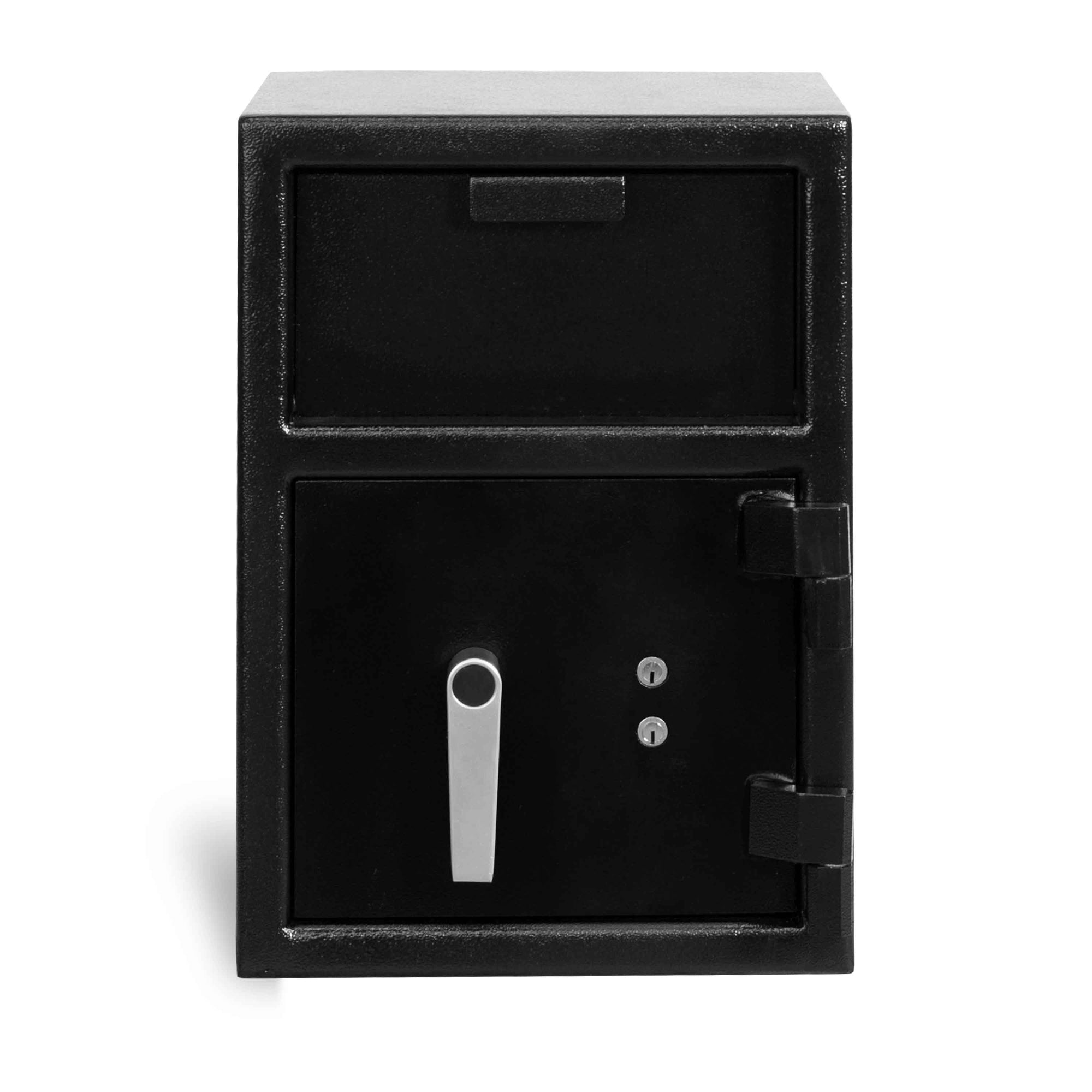 Front loading deposit safes are the most common drop safe and feature a large drop on the front. This makes dropping your deposit bags into the safe simple for businesses that need to to protect their deposits before they need to go to the bank. A front loading deposit safe is ideal for hotels, motels, gas stations, restaurants or any retail company or business that deals with large volumes of cash. To prevent someone from fishing out your money or deposit bags with a coat hanger, there are anti-fishing baffles and jagged edge teeth on the drop and also on the inside of the safe.