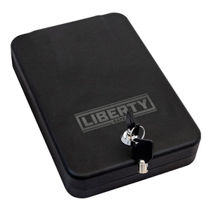 The Liberty HDV-50 Key Handgun Vault is a perfect fit if you are looking for a portable handgun vault. It is small enough to hide in smaller spaces and is TSA-compatible for airline use. You can even hide this safe underneath your vehicle seat, desk drawer, nightstand, and closet shelves. It can also protect phones, wallets, passports, medications, and other small valuables.