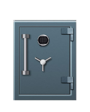Security features include a U.L.-listed Group II key-changeable combination lock with a spring-loaded relocking device that activates in the event of an attack. Other lock options are available for an upgrade, including electronic locks, multi-user, audit trail, or high-security Group 1R locks. The lock and relockers are protected by a drill-shattering composite hard plate, while a handle-activated locking mechanism secures the door with three massive 1-1/2" solid steel bolts. Finished in a professional powder-coated blue, this 1200-pound safe is ideal for both commercial and residential environments where security is a top priority.