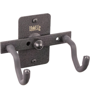 The HD09 wall mount pistol holder from Hold Up Displays is designed to safely hold any pistol or revolver. It can be positioned at any angle to display your firearm properly. These can be configured for use with Hold Up Displays 3" slatwall panels or to be mounted directly to your wall with the flatwall option.