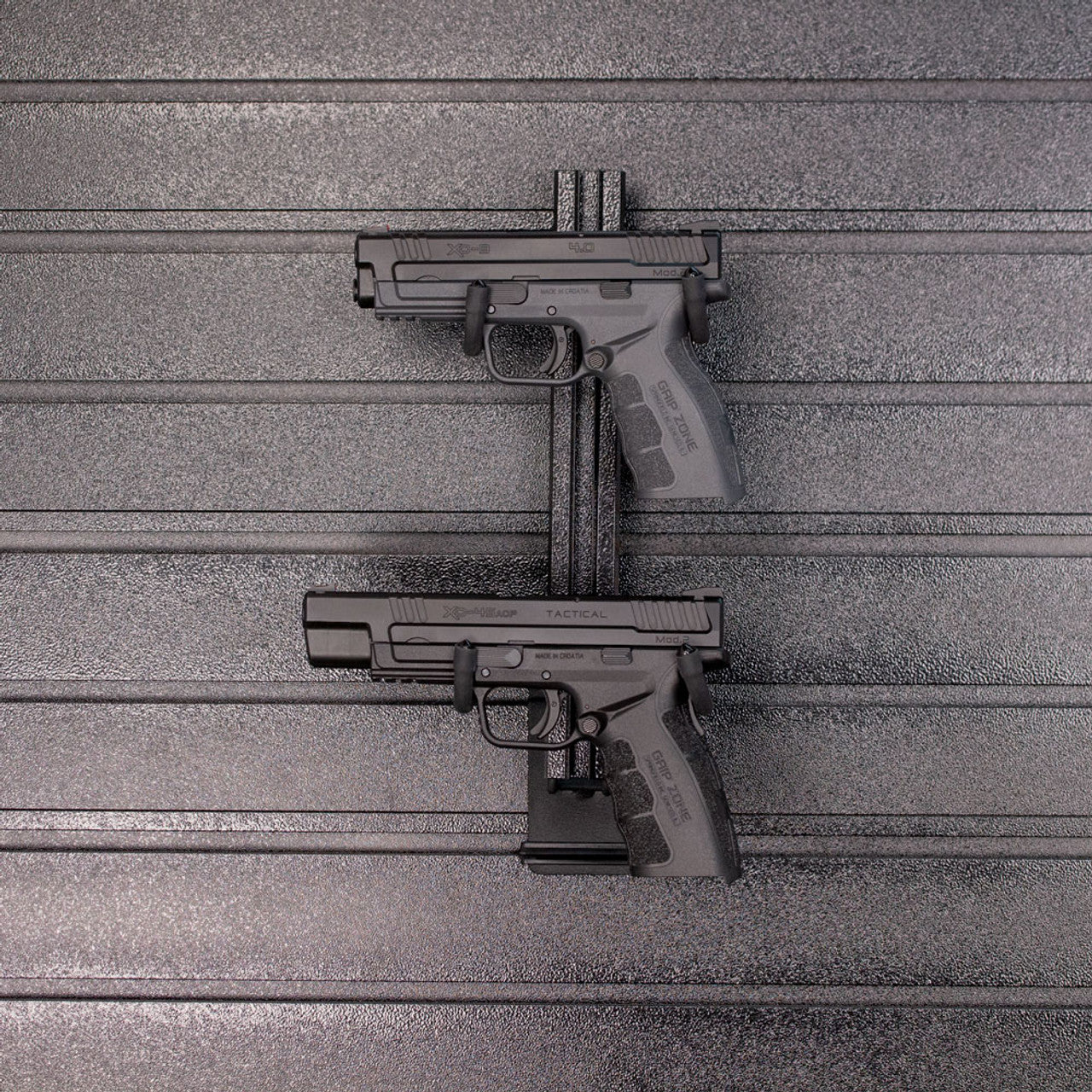 Most Hold Up Displays accessories can be purchased for use with their high quality aluminum 3" slatwall panels, or can be attached directly to your wall with the "flatwall" mounting option. Gun racks are made from the strongest materials and have protective coatings that will not damage your collection.
