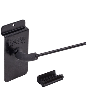 The Hold Up Displays HD52 In-Barrel Wall Mount Pistol Holder is a smart way to store and showcase pistols in tight spaces. Its 30-degree mounting angle creates clear visibility and quick access, making it ideal for high-density pistol walls in gun rooms, vaults, and retail setups. The in-barrel design securely holds handguns without damaging the interior and can be oriented left, right, or front-facing, depending on your layout. Built from steel with a durable black powder-coat finish, the HD52 is made in the USA and is available for either flat-wall or slat-wall mounting. Backed by a lifetime structural warranty, it's a simple, rugged solution for expanding or organizing your display.