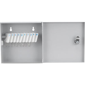 The Barska CB13362 10 Key Lock Box features solid steel construction, a continuous piano hinge that allows the box to open to a fully horizontal position, and a key lock that secures the door. The numbered key labels are included and this item comes with a limited one year warranty.