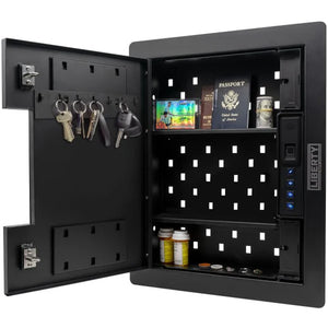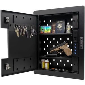 Built with flexibility, the Liberty HDW-100X-R Wall Safe features adjustable shelving, allowing you to organize your valuables efficiently. Whether you're storing important documents, jewelry, a handgun, or small electronics, the customizable interior ensures everything has its place. The dual latch closure and a secure cylinder key entry for backup further enhance the safe's protective features.