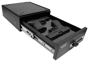 Equipped with a reliable SIMPLEX mechanical push-button lock, the Slide-Away Safe allows you to program your PIN code for fast, battery-free access. The oversized pullout drawer, supported by a spring-assisted ball bearing slider with a 100-pound load capacity, provides smooth operation and can store up to two full-sized handguns (1911 models), valuables, or even an iPad. Its foam-lined interior protects your belongings from scratches and damage.