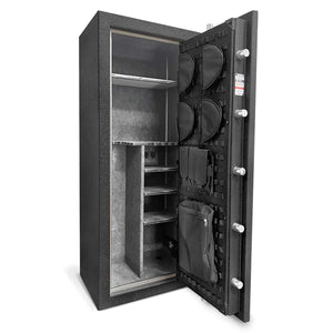 The Stealth UL23 Gun Safe boasts a 23-gun capacity and meticulous design, standing at 59.00" high by 24.00" wide by 18.00" deep. It's tailored to fit seamlessly in your closet, ensuring your firearms and valuables remain secure and easily accessible.