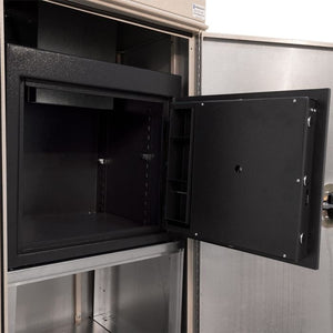 Security is paramount with built-in theft deterrent features, including constructed depository openings and chutes that thwart removal attempts by thieves. Interlocking seams resist prying attacks, while a 3-point locking system secures the top, bottom, and opening sides of the unit. A keyed paddle lock with a weather-sealed cover prevents freezing and keeps dirt out. This model features a heavy duty safe inside with 1/8" steel body and "B" Rate 1/2" steel door. It has a UL Listed Group II Dial Combination Lock and 1-1/4" massive chrome plated solid steel live locking bolts for additional security.