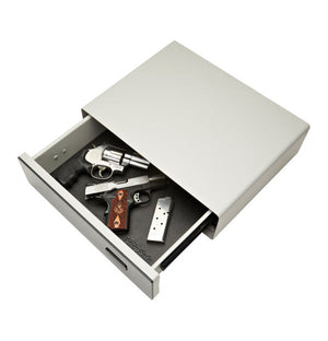 • Spring-assisted slide-out drawer accommodates handguns, jewelry, documents, and other valuables.