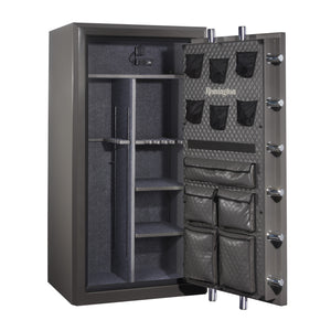 The Remington name is well known in the firearms world for offering quality products. They've now put their name and reputation on the Remington Gun Safes. The Remington SAR6536N Nitro Series Gun Safe offers some great features that make it the ultimate gun safe for your rifles, handguns, and valuables. This model holds up to 36 rifles and six handguns on the door.