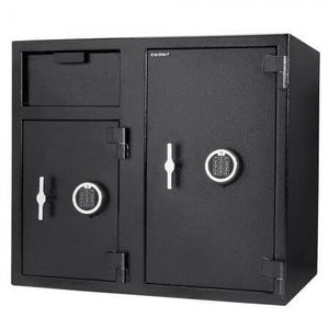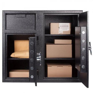 CLICK HERE to watch our video on “What to Do When Your Safe Arrives.”The Barska AX13316 Double Door Depository Safe is perfect for those that need to store cash trays and also make deposits. The right compartment is 26.50" high, 16.50" wide and 18.50" deep on the inside. It comes with 2 adjustable shelves. This large locker is designed to store a large volume of cash trays. The left compartment is used to drop deposits inside the safe. The drop drawer is protected by an anti-fishing drop door. This will prevent anyone from sticking a coat hanger or their hand to fish the deposits out.