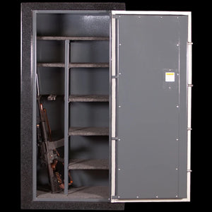 The beauty of the Model 3627-6 lies in its flexibility; configure it exactly how you need it. Without a fire lining, you get a generous 34.07 cubic feet of storage space, allowing you to fit up to 28 long guns. Add the optional fire protection package with 2.5" of 2300-degree ceramic wool plus additional fiberglass blanket layers, and you'll have peace of mind knowing your collection can survive the unthinkable. The rack and shelf system adapts to your collection, while the all-shelf option maximizes storage for those prioritizing documents and smaller items. Best of all, this investment is protected by Sturdy Safe's lifetime warranty because when you build something right the first time, you stand behind it forever.