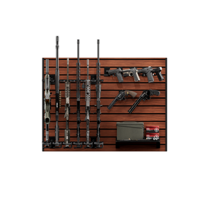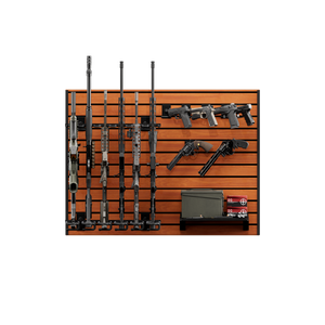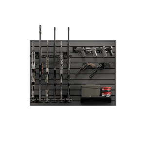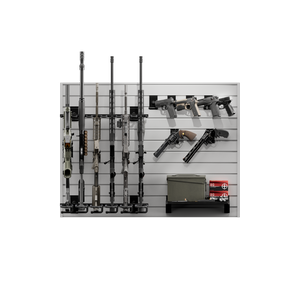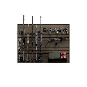 This modular storage solution is made in the USA from high-strength aluminum and is compatible with other 3" Slatwall accessories. Its moveable accessories mean you can arrange your firearms in a way that fits your needs, and its sturdy construction means you can sleep at night without a worry in the world. The versatility of this product makes it the perfect match for you.