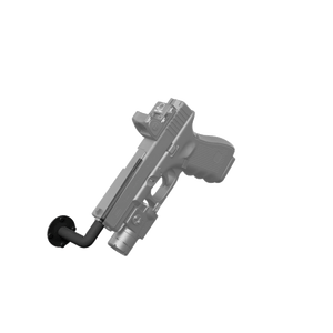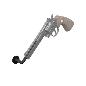 The Hold Up Displays 90 Degree In-Barrel Multi-Surface Handgun Display HD85-90 offers a clean, space-efficient way to store or display a handgun on solid surfaces such as desks, tables, or workbenches. Using a simple in-barrel mounting design, this hanger supports the firearm at a 90-degree angle for a discreet, professional presentation while keeping the handgun easily accessible. Finished in a durable black powder coat and built to last, it's a practical storage solution for pistols in offices, gun rooms, or display areas. Proudly made in the USA and backed by a structural lifetime warranty, the HD85-90 includes mounting hardware.
