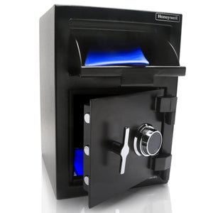 CLICK HERE to watch our video on “What to Do When Your Safe Arrives.”Do you need a place to store and protect your deposits until you can take them to the bank? The Honeywell 5911 Front Loading Depository Safe is designed just for that purpose. The mail box style drop is able to be pulled open and the deposit bag can be inserted into the drop compartment. All you need to do is close the mailbox style drop door and the deposit bag will fall into the internal compartment where it will be secure until it can be taken to the bank at the end of the shift. This is perfect for restaurants, convenience stores and anywhere that takes in cash during the day.