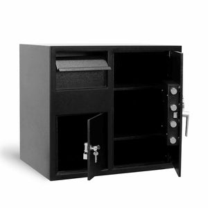 Designed with convenience in mind, the front-load (mailbox style) depository drop with anti-fish baffles makes depositing items quick and effortless. Its auto-locking mechanism ensures that the door automatically locks upon closure, providing an extra layer of security against potential mishaps.