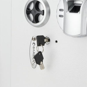 The biometric lock on the Barska AX13030 White Biometric Wall Safe gives you quick access to your safe with fingerprint recognition technology. Just swipe your finger across the scanner and the two motorized steel deadbolts will unlock allowing you to pull the door open with the handle. You can program up to 120 fingerprints into the lock. This means you can program trusted friends or relatives so that if they need access to your safe, they can get in. Barska includes a key override in case the four AA batteries die or something happens to your lock. Two override keys are included with the safe.
