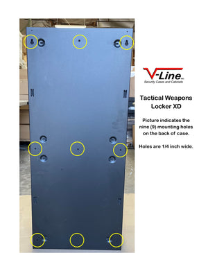 You have convenience, security, and organization, but what about the construction of the V-line Tactical Weapons Locker XD? The door is made with heavy-duty 14 gauge steel, and the body is made of 16 gauge steel. A dual spring strut aids in opening and carrying the load of items installed in the molle panel. There are pre-drilled holes in the bottom to allow for various mounting options.