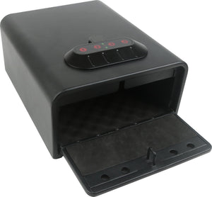 The outside is protected by a fully programmable 4 digit electronic lock. You can select your own custom combination from 3-8 digit codes. The touch pad is backlit illuminated in red for easy access in the dark. The buttons do make a sound when pressed but can be muted if you so choose. There is also a tamper indicator which will alert you in case someone tries to break into the handgun vault. There are 2 override keys provided in case the batteries die or something happens to the lock.