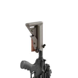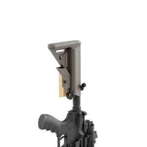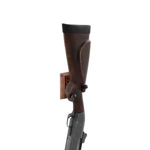 The Hold Up Displays HD01 Hardwood Vertical Gun Hanger is a clean, space-efficient solution for displaying and storing long guns, shotguns, rifles, or bows on a flat wall surface. Designed with a pivoting cradle, it comfortably accommodates a wide range of firearm and bow styles, while rubber-tubed metal hooks help protect finishes from scratches or damage. The solid mounting black is crafted from genuine North American hardwood and finished for a refined look, making it a natural fit for gun rooms, wall displays, or home collections. Easy to install with mounting hardware included, the HD01 maximizes wall space while keeping your firearm secure and accessible. Made in the USA and backed by a structural lifetime warranty, it's available in Black Walnut, Oak, Cherry, or Ash to match your space.