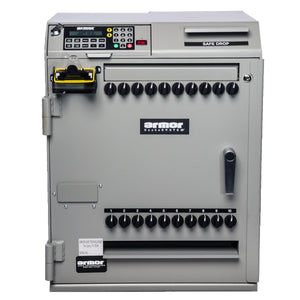 The Armor CS-7100 CacheSystem 7100 Series Time Delay Cash Dispensing Safe is purpose-built for high-security retail environments that demand speed, accuracy, and accountability. Constructed from ultra-durable Grade 80 steel, this 475-pound safe delivers exceptional protection with a ½-inch self-locking vault door, drill-resistant hardplate, and an interlocking back flange to resist hinge attacks. The time-delay dispensing feature minimizes theft risk by reducing cash exposure, while 120 high-capacity tubes provide quick and secure access to change funds during daily operations.