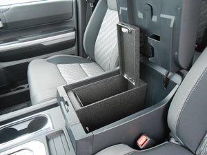 CLICK HERE to watch our video on “What to Do When Your Safe Arrives.”Secure your gear with confidence in your Toyota Tundra using the Console Vault Center Console Half Safe, custom-designed for model years 2014–2021. Crafted from heavy-gauge cold-rolled plate steel with precision-welded tabs and notch seams, this rugged in-console safe delivers uncompromising protection without compromising factory aesthetics. It fits seamlessly into your factory center console and installs in just 10–15 minutes using basic tools—no modifications required.