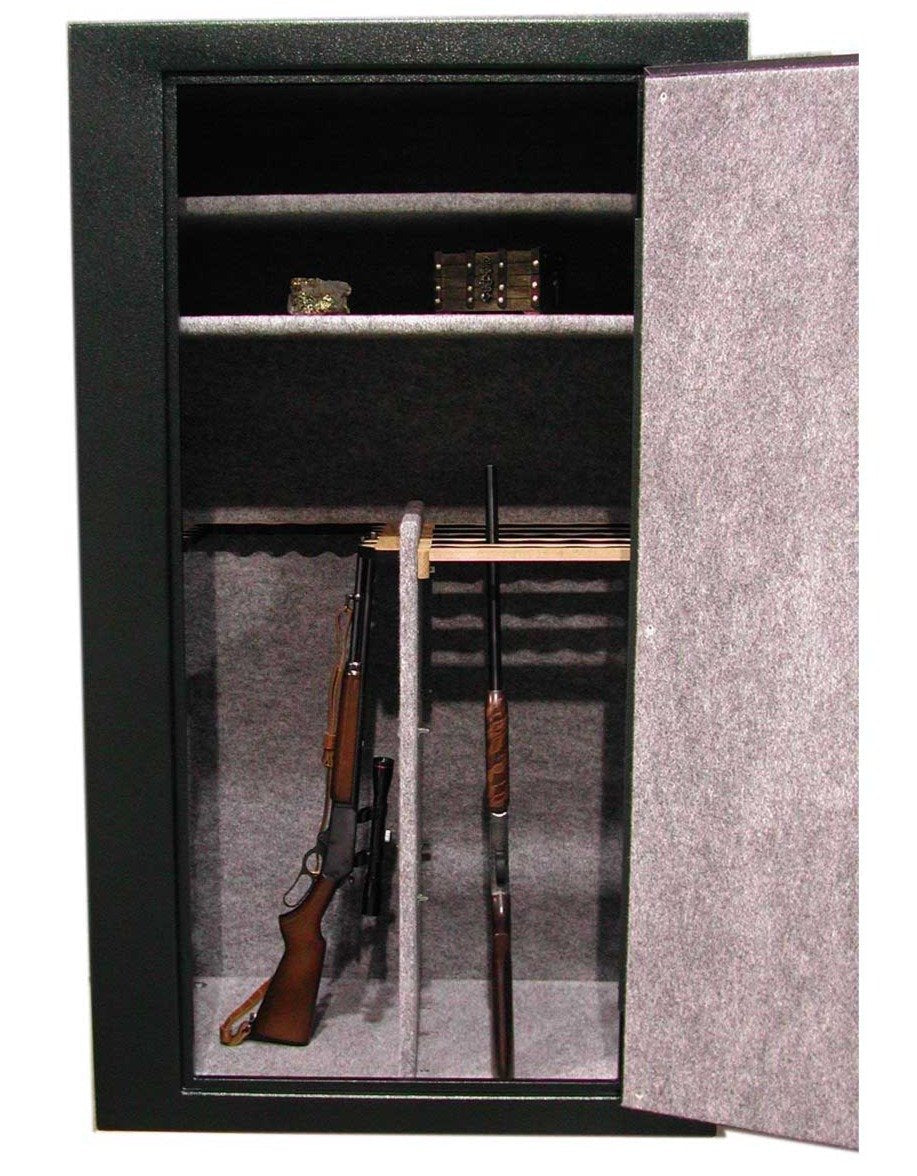 With 10 gauge steel construction in the body with a 1/4" solid steel door provide you with the peace of mind you are looking for. The 1" square locking bolts and an industry first 3/4" solid steel bar provide more locking surface than any other gun safe out there on the market. Need more proof? The door is recessed to prevent pry attempts, drill stop plates and relocking devices insure no one will have unauthorized access to your valuables. This safe is also known as the Ironman 5200.