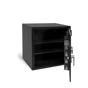 Customization is at your fingertips with a choice between two premium locks: the S&G 6730 Mechanical Lock or the Lagard Basic Digital Lock. The exterior is painted in a rust-resistant black powder coat finish, promoting durability. Allowing for effortless access, a convenient drop handle enables smooth door operation. Inside, the safe features two adjustable shelves, aiding in optimal organization.