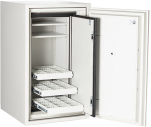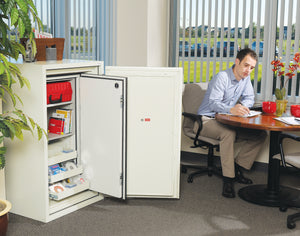 The Phoenix 4621 Data Commander 2 Hour Data Media Safe can help to protect data and other documents such as tax records, company deeds and registration certificates from theft as well as water and fire damage. Although many important documents are now kept in digital format, these items plus valuable documents require protection. An insurance policy isn't going to enable you to replace these assets, so a data safe is essential to provide the appropriate protection. Paper will combust at temperatures greater than 177°C (350° Fahrenheit), but the data on storage media such as CDs, etc. is far more vulnerable to heat; it can be corrupted or destroyed when the temperature rises above 52°C (125° Fahrenheit). In order to protect data media from theft and fire, this data safe is specifically designed to protect data as well with up to two hours fire protection. The large size of the Phoenix 4621 safe gives you plenty of storage room and the electronic combination lock that allows you to program your own code, which you can change at will.If you have any questions regarding the Phoenix 4621 Data Commander 2 Hour Data Media Safe, please give us a call today at 800-207-2259!