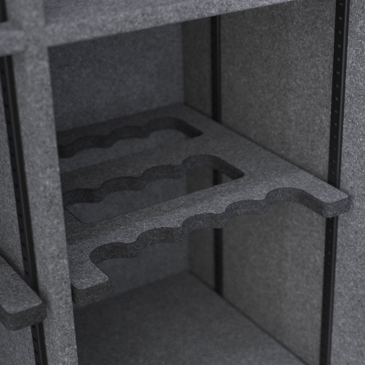 • Fully carpeted interior, top shelf, and barrel rests to protect against scratches