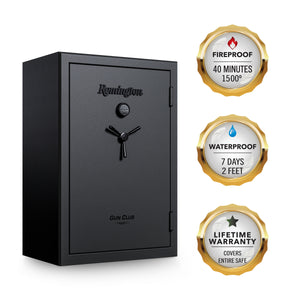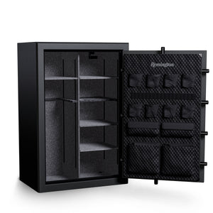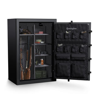 The Remington SAR5952C Gun Club Series 52 Gun Safe is the latest addition to their line of fireproof and waterproof safes. This is the largest size in the series. Combining luxurious aesthetics with top-tier protection, this safe accommodates 52 long guns inside and features space for two handguns on the door.