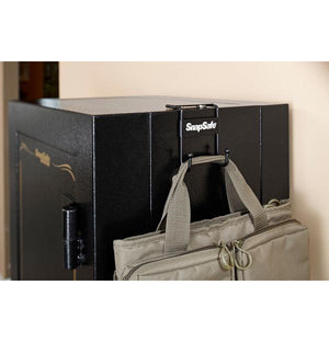 The SnapSafe Magnetic Safe Hook has heavy duty magnets that secure the hook to the metal safe and it is rated for up to 15 lbs. Simply position the hook on the corner of any gun safe and your items are now conveniently easy to reach.