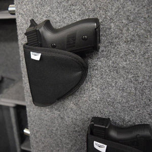 A common issue is what do you put your handgun in to protect it once it is in your gun safe. The Stealth Pistol Holster is designed with 2 times (2x) the Velcro of most other pistol holsters on the market. It is perfect for protecting your handguns from scratches inside your gun safe. It will stick to any type of carpeting inside your safe.