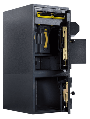 The AMSEC BR3113 CashWizard Two Door Smart Safe is engineered for businesses that demand both high security and operational efficiency. With two secure compartments and configurable validator options—including single-note, bunch-note, or dual combinations—it provides the flexibility to adapt to your cash-handling needs. The upper compartment features a high-speed validator (one note per second) for swift cash deposits, while the lower storage area includes a drop slot for large bills, checks, and change. Built to withstand tampering, it features anti-pry doors, dead latch locking mechanisms, and a spill-resistant keypad that can store up to 500 user credentials.