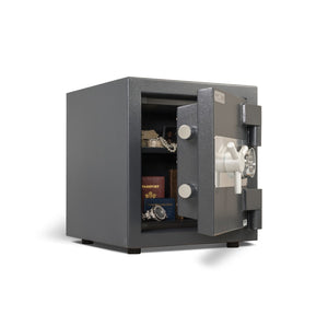 The AMSEC CSC1413 Dual Rated Burglar and Fire Safe shows off a door with an overall thickness of 4-5/8" and is constructed with a 2" defense barrier of outer and inner steel plates. This creates a burglary-resistant structure enclosing AMSEC's unique proprietary, fire-resistant material. Pretty impressive, huh? We think so, too. Along with the thick door, we have included (2) two 1-1/2" diameter solid steel chrome-plated locking bolts and (2) two 1-1/2" diameter solid steel deadbolts that lock deep into the body, preventing door removal during a forced entry attempt. The overall thickness of 4-5/8" on the door and 2-7/8" on the body helps provide the 2-hour, 350-degree factory fire rating. This is your assurance that the contents of your safe are protected from fire.